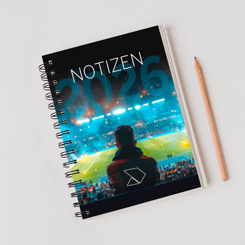 Individuell bedruckte Spielplaner, Notizbücher, Taschen & Shirts für Ihren starken Markenauftritt.