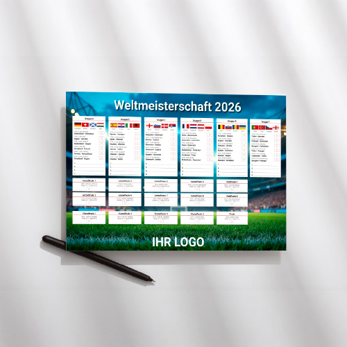 Personalisierte Werbeartikel schaffen Aufmerksamkeit, stärken die Markenbindung und bleiben nachhaltig im Einsatz. Große Sportereignisse wie die WM bieten eine ideale Bühne, um mit individuell gestalteten Produkten Emotionen zu wecken und Ihre Botschaft wirkungsvoll in Szene zu setzen. Wir entwickeln und produzieren Ihre Werbeartikel ganz nach Ihren Vorstellungen – individuell gestaltet, hochwertig umgesetzt und selbstverständlich termingerecht geliefert – von der ersten Idee bis hin zur finalen Produktion.