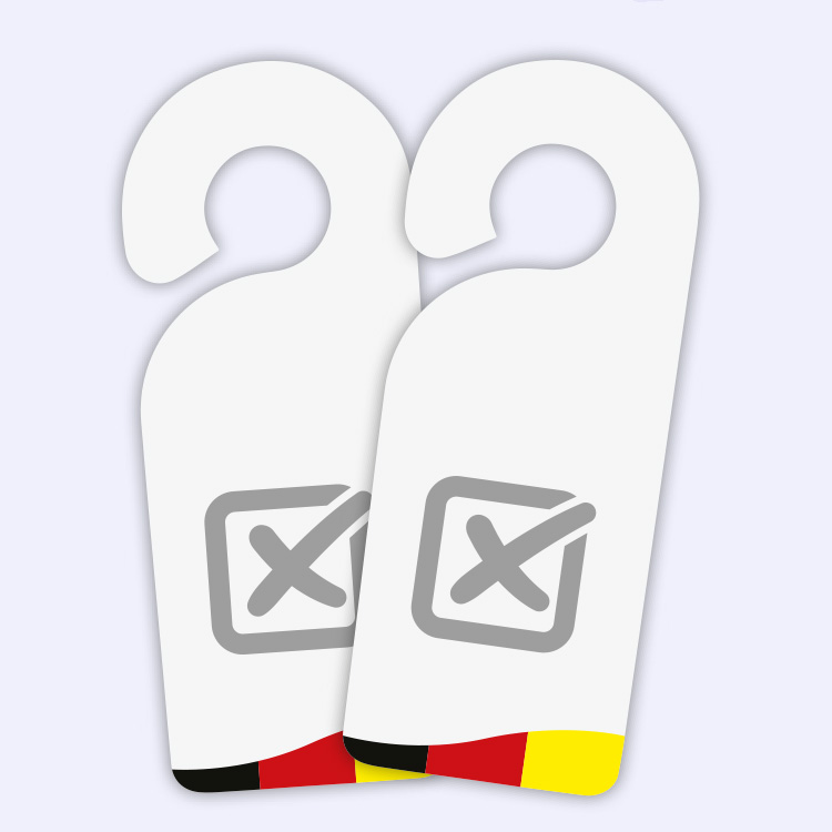 Tür-zu-Tür-Kampagnen: Setzen Sie auf Transparenz und Dialog – auch dann, wenn niemand die Tür öffnet. Ein Türanhänger enthält klare Informationen und ermutigt die Bürger, am Wahltag das Kreuz an der richtigen Stelle zu setzen.